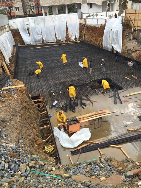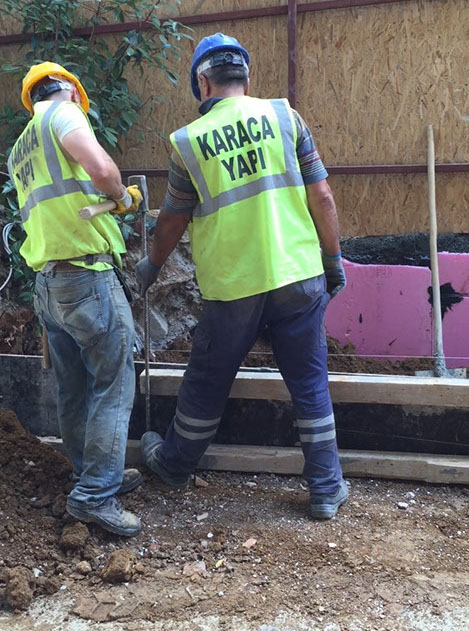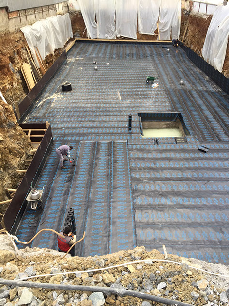 Ersan Asansör • Kombi Sistemi • PVC Membram izolasyon (temel çatı) PP300 ondiline • Bütün perdeler Weber Sürme izolasyon • C35 Beton
